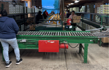 📸 Above: Frog Hollow Farm's conveyor belt, speeding up packing for CSA shares.
