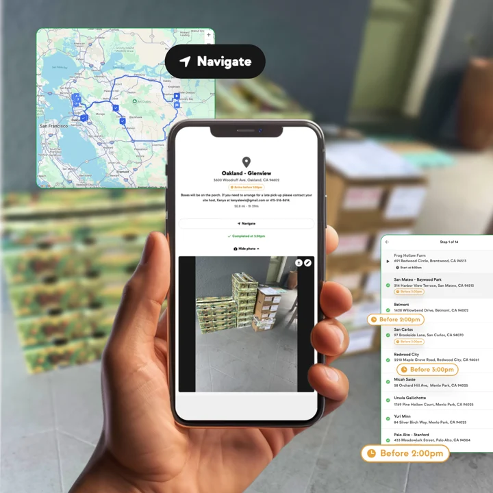 The farm combines wholesale and CSA deliveries on the same route to make best use of their vehicle capacity and driver efficiency. With optimized routing and navigation, drivers know exactly where to go and what to deliver, while built-in routing ensures deliveries stay on schedule for each pickup site.