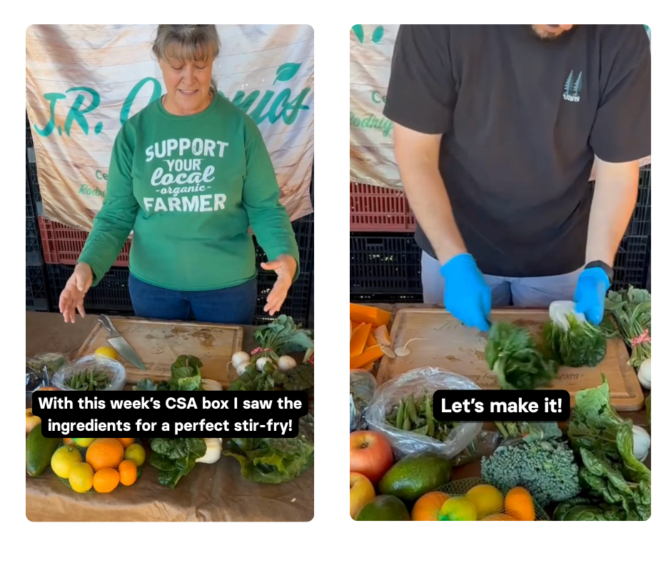 Along with their visual CSA displays, they consistently show people how to use what’s in the box — in person at the market and online through paired recipes, short videos, and weekly content. They often reinforce that with simple touches like offering samples so shoppers can taste it in real time.